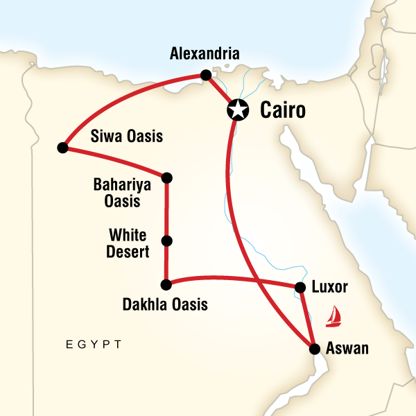 This morning we travel by private van back to Cairo where this amazing adventure comes to an end. Our expected arrival time is around noon and you are free to depart any time after that. If you are leaving Egypt today, we recommend that you do not book a flight departing before 3pm in the afternoon. We are able to organise extra post-trip accommodation if you wish to extend your stay for a few more days. Please ask at the time of booking. Estimated Travel Time: Alexandria to Cairo, 4 hrs