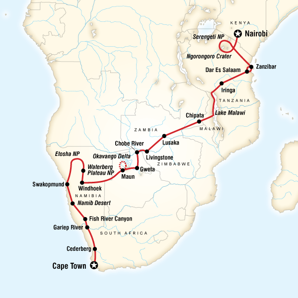Approximate Distance: 286 km Estimated Travel Time: 7 hrs (depending on border crossing) Today we will cross the border from Tanzania to Kenya. The name of the border posts are Namanga border post on both sides. Some nationalities do require a visa for Kenya. See our visa section for further information. Remember that visas are your own responsibility; please double check with your agent if you will require a visa for Kenya. The currency in Kenya is Kenyan shilling (KES.)You will be able to change your left over TZS at the border or in Nairobi. Most establishments, activities etc. do accept USD for payment. Departing Arusha in the morning we make our way to Nairobi, and the tour ends upon arrival into Nairobi, in the late afternoon, at the Hotel Boulevard in central Nairobi. In order to avoid any necessary issues with timing, please book your outgoing flight from Nairobi from 21:00 hrs or later. There is no included accommodation for this night in Nairobi. You may choose to pre-reserve post-tour accommodation at through G Adventures.