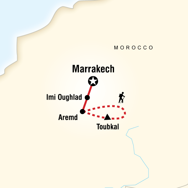 A long descent leads us back via Sidi Chamharouch and Aremd to reach Imlil. After a quick lunch we bid farewell to muleteers and transfer back to Marrakech. We have the early evening to explore this wonderful city - perhaps for some serious bargaining for souvenirs. Djemaa el Fna, the open-air market place around which the traditional life of Marrakech revolves, has always been an exciting place to visit. The name literally means 'place of death' as it was the place where the Sultans used to display the heads of their enemies. Now, with the food-stalls, snake-charmers, water-sellers, travelling musicians and acrobats, the square is a place of entertainment for both Moroccan and overseas visitors. The modern shopping centres and boulevards of the French-built new town are also only a short walk away. Please note that only certified local city guides are allowed to guide travellers in the medina, therefore your CEO cannot accompany you through the souks, but will be able to help you find a local guide if you wish. Of course, you are also free to wander at your leisure, just make sure to get a map! We spend this evening in a Marrakech hotel. Approx walking time: 4-5 hours excluding stops(descent 1470m). Approx driving time:1.5 hours, Imlil to Marrakech.