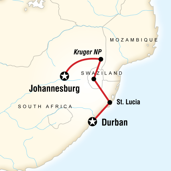 Approximate Distance: 277km Estimated Time: 6 hrs Today we will cross the border from Swaziland to South Africa. The name of the border posts are Lavumisa in Swaziland side and Golela on the South African side. Some nationalities do require a visa for South Africa. See our visa section for further information. Remember that visas are your own responsibility; please double check with your agent if you will require a visa for South Africa. The currency in South Africa is the South African Rand (ZAR). Today we depart for the beautiful Zululand area, re-entering South Africa into one of its most diverse regions. We stay in the St. Lucia area near the coast. Here take the optional boat trip on the estuary or go for a horse ride on the beach. On day 7, visit the Umfolozi Game Reserve (optional) which is a safe haven for both the white and black rhino, and as well lions, buffalo, elephant, and leopard call the reserve home. Also, meet our local friends with a traditional Zulu dinner. The St. Lucia Wetlands is a huge expanse of estuaries which is dominated by Lake St. Lucia, the largest estuarine body of water in South Africa. The St. Lucia Marine Reserve, which extends roughly from Sodwana in the north to Mapelane in the south, contains no less than five different ecosystems, and is home to complex body of vleis (wetlands), pans, swamp forests and grasslands. These include the lake itself, a wilderness area known as Mfabeni and Tewati, a marine conservation area, the reed and papyrus wetland of the Mkuze swamps and western shores, and a fossil shoreline more than 25,000 years old.This was the first game reserve in South Africa. Today the Greater St. Lucia Wetland Park stands as a beacon to the efforts for conservation in South Africa. Option to go for boat cruises, kayaking or game driving in Hluhluwe/Umfolozi Game Reserve.