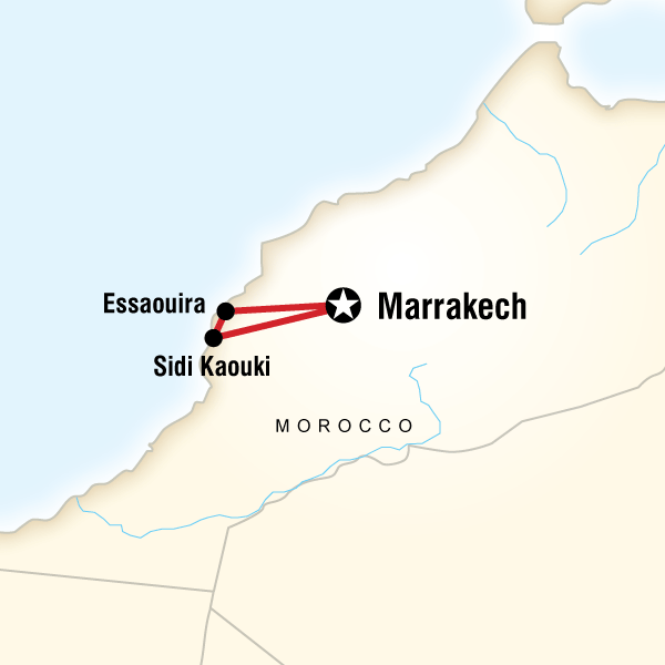 After a last free morning by the beach, we transfer by bus to Marrakech, where we have time for one last group meal in the city.