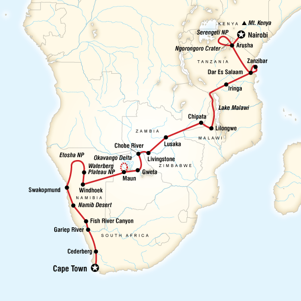 Day 12 - Approximate Distance: 534 km ; Estimated Travel Time: 9 hrs Day 13 - Approximate Distance: 235 km ; Estimated Travel Time: 5 hrs Today we will cross the border from Tanzania to Malawi. The name of the border posts are Songwe border post on the Malawian side and Kasumulu border post on the Tanzanian side . We have been experiencing a lot of problems with people that need visas for Malawi. Malawian visas is not available at the border, so please make very sure if you do need a visa before arrival. See our visa section for further information. Remember that visas are your own responsibility; please double check with your agent if you will require a visa for Malawi. The currency in Malawi is Malawian Kwacha (MWK.)You will be able to change your left over TZS at the border or only in Lilongwe. Most establishments, activities etc. do accept USD for payment. Cross into Malawi, which is known as 'the warm heart of Africa.' Spend three days relaxing on the shores of 'the Lake of Stars' taking long beach walks and swimming in the crystal clear water. Snorkel or scuba dive among the tropical fish (at your own expense). As you snake down the shores of Lake Malawi, visit various lakeside camps to overnight. This is Malawi’s main attraction and covers one fifth of the country. It is the third largest lake in Africa and is about 500km long. The lake has more fish species than any other lake in the world with around 600 different species. The largest family is the chichlids, which are exported all over the world to pet shops etc. The lake is also known for its good snorkelling and diving. The locals depend on the lake for fishing and survival and use dug out canoes to fish from and set out long nets. There are many different ethnic groups all speaking their own language, most are Christians and the rest have traditional beliefs as do most African countries