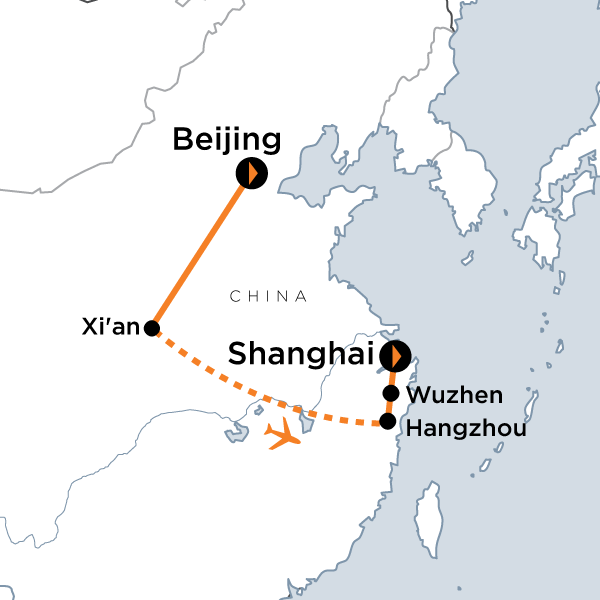 Today we journey by a private bus to Wuzhen Canal Town where the canals function for transportation as well as creating a mystical charm over the city. This town is close to the bustling metropolis of Shanghai, and we'll note the difference just a short distance can create in dynamic China. After a delicious lunch, we will head out to Shanghai and after settling into our comfortable hotel, we take our first walk on the Bund and admire the futuristic skyline.