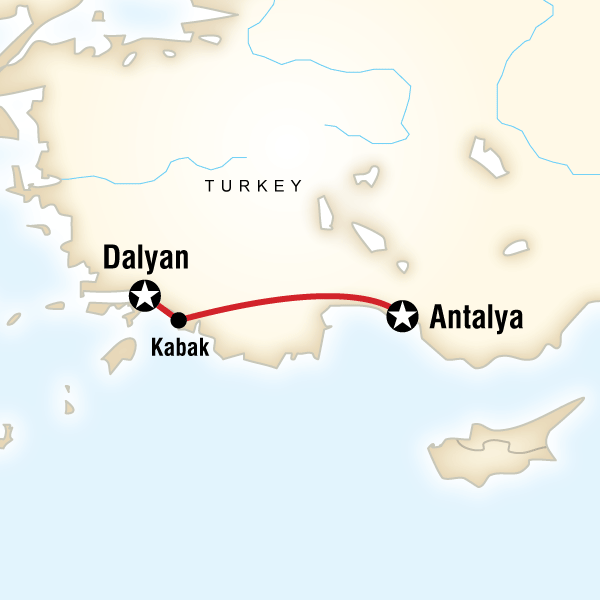 This morning, we set off to walk along the Lycian Way. After waving goodbye to Kabak village this morning, we start our day with a visit ancient Tlos, spectacularly located on the top of a large hill. Once an important town and one of the main cities of ancient Lycia, Tlos features an ancient theatre, ruined temples and stunning rock tombs, all in a wonderful, tranquil setting. We take our lunch break near the Saklikent Gorge, the longest and highest gorge in Turkey. Take your pick from the small restaurants with seating areas on wooden platforms just above the river. These are a great place to relax on a Turkish rug under shady trees, perhaps lunching on the local specialty: delicious fresh trout. We spend our time hiking through the small villages and stunning scenery of this region while still allowing plenty of time for swimming and enjoying the local cuisine. Start the day with a trek up to the village of Kayakoy, a walk of around 2.5 hours. This old Greek village became a virtual ghost town overnight when in 1923 the Turkish and Greek governments ordered an immediate population exchange. Now preserved as a museum village, it consists of hundreds of rundown but still mostly intact Greek-style houses and churches, which cover a small mountainside. We will take a lunch break here, a great chance to try gözleme, sometimes called "Turkish pancakes", where fresh pastry is rolled out, filled and sealed, then cooked over a hotplate. The following day we transfer by bus to the village of Ovacik where we continue trekking on the Lycian Way, through typical old Turkish villages to Faralya. We walk approximately 13km (4-5 hours). After a lunch break in Faralya, our bus will return us to our base at Kabak village where you can spend the remainder of your day relaxing on the beach. There is also the option today to take a tandem paraglide over Oludeniz- an unforgettable experience. Please let your tour leader know if you are interested in this. Estimated travel time: Lycian Way hikes, 4-5hrs. Oludeniz to Kabak, 30mins (drive); Kabak to Ovacik, 20mins (drive)