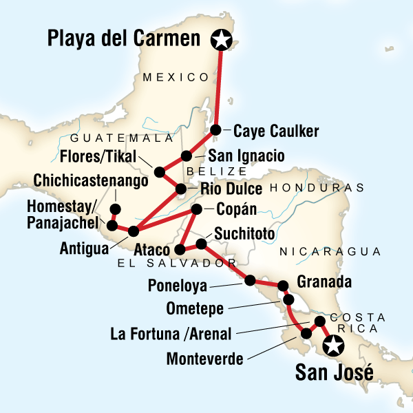Travel into Honduras and opt to visit the Mayan ruins of Copán. The Mayan ruins of Copán are fascinating, beautiful and unique among Mayan cities. Declared a World Heritage Site by UNESCO in 1980, Copán contains some of the most important Mayan ruins found to date, and many unusual artistic features. Visitors walk through grassy plazas filled with intricately carved and decorated monuments, statues and staircases. Huge carved faces stare at you from ancient walls and bring the place to life, causing renewed wonder at the mysterious disappearance of such a creative civilization. The colonial highland town of Copán Ruinas is a charming and relaxing place. This town has a lot more to offer than just the ruins. Opt to explore the nearby hills on horseback and check out some lesser known Mayan sites along the way or check out a local private macaw reserve that is also home to a large variety of other birds on the property. If neither of those appeal, you can journey to some local hot springs for a relaxing soak. After a long travel day on Day 16, arrive to Antigua, where you'll enjoy an orientation walk with your CEO. Once the third largest city in all of Spanish America, Antigua served as Guatemala's capital city for more than 200 years until it was destroyed by an earthquake in 1773. Modern Antigua is a peaceful, partially restored colonial city that is a pleasure to explore. Enjoy the beautiful architecture of this UNESCO-designated, World Heritage Site. Take a mountain bike ride out into the countryside or explore the fascinating markets, shops and museums within the city. Walk through quiet cobblestone streets past rebuilt stucco homes with heavy, beautifully carved wooden entrances. The point of reference for finding one's way around Antigua is the Central Park, which is directly in the centre of town and the place to be in the late afternoon/ early evening. You can pick up a map from the tourist office located on the ground floor of the Palace of the Captains General on the south side of the Central Park. Explore the museums, the colonial buildings and other sites in this delightful town. If you have extra time at the end of your trip, Antigua offers three specialties that make shopping here very worthwhile. Textiles sold here and in the nearby towns are of the highest quality, beautifully designed and woven on foot looms or the rarer back strap loom. Jade, in the form of carved statues and jewellery, is sold in several factories and shops in town and silver jewellery is sold in the better shops and also in a silver factory in nearby San Felipe de Jesus. The city offers good buys in ceramics and antiques as well. Concepción de Ataco to Copán: Estimated Travel Time: 8 hours Approximate Distance: 400 km Copán to Antigua: Estimated Travel Time: 8 hours Approximate Distance: 200 km
