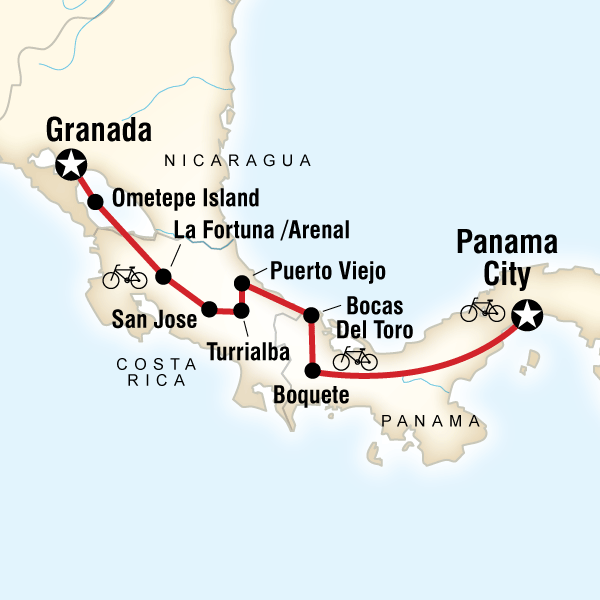 Our journey takes us onto one of the most iconic roads in all of the Americas. The Pan-American Highway travels from Alaska down to Patagonia, covering the length of the continent, and taking in a huge variety of terrain, the road snakes its way through 23 countries, with a break of just 87 kilometres along the way. We get back in the saddle when we reach Lake Arenal, in the shadow of the eponymous volcano. The volcano, once quite active, has been in a dormant state since the beginning of 2011 but still is a dramatic backdrop to the town of La Fortuna. We cycle through lush rainforest and over rolling hills before we arrive in the town of La Fortuna. Along the way we are likely to see monkeys and a variety of birds as this colourful route is brought to life. The road we follow is almost entirely paved, and travels over rolling hills. After a day of cycling we, as we cycle up Arenal Volcano to El Castillo. We follow a route via Arenal Dam up to the village of El Castillo. This ride takes us on an old road connecting Arenal Dam with the main entrance to Arenal Volcano National Park. From there we go towards the village of El Castillo, crossing country tracks through farm land, and keeping an eye out for diverse wildlife. This afternoon is free to relax or enjoy some of the many activities available in La Fortuna. Why not try rafting on the Arenal river? Approximate Cycling Distance - 35km (Arenal to La Fortuna) Approximate Cycling Distance - 15km (Arenal to El Castillo)