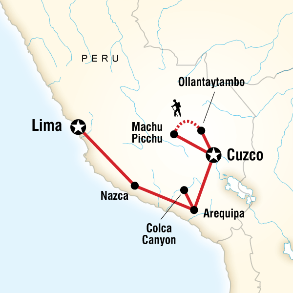 The 4-day Inca Trail to Machu Picchu is physically challenging but worthwhile, and the excursion is within the ability of most reasonably fit. It is a 44-km (27 mile) hike, with 3 high passes to be crossed, one of which reaches an elevation of 4200m (13776 ft). The trail is often steep, and it may rain even during the dry season. The temperatures at night may fall below zero, so it is important to come prepared. Depart Ollantaytambo for km 82 where we begin our walk in the footsteps of the Incas. Our local crew of porters, cook and guide look after us well for the duration of the hike. Porters carry the majority of the gear for the hike, so those passengers doing the hike only carry a small daypack with water, rain gear, snacks, a camera, etc. As you walk the trail that linked this ancient empire, admire breathtaking views at every step as we move from high plateau areas to dense cloud forest. Depending on the season, you may see a great variety of flora, including miniature and large orchids, and fiery rhododendron bushes. You pass several smaller ruin sites, the first of which is Llactapata. The second day climb the long steep path to Warmiwañusca, or Dead Woman’s Pass. At 4198 m (13769 ft) above sea level, this pass is the highest point of the trek. The second pass of the hike is at 3998 m (13113 ft) where on clear days, we enjoy superb views of the snow-capped Cordillera Vilcabamba. The trail goes through some beautiful cloud forest on the gentle climb to the third pass, where you will walk through a causeway and a tunnel, both original Inca constructions. The highest point of the third pass is at 3700m (12136 ft). On clear days you are rewarded for all this work with beautiful views of the Urubamba Valley below. Soon you reach the serene ruins of Phuyupatamarca, or the 'Town above the Clouds', at about 3650 m (11972 ft) above sea level. We will camp either here or an hour and a half further along close to Wiñay Wayna (Forever Young) ruins, a grandiose terraced hillside site, with panoramic views of the valley below and just a short hike from Machu Picchu. On the final day of the hike we climb the steps to the Sun Gate overlooking the peaks that surround Machu Picchu. When the morning is clear, there is no way to describe the feeling of the first views of Machu Picchu, as the mist rises off the mountains early in the morning and the famous site appears in front of you. Following the visit to Machu Picchu, time allowing, travellers can opt to visit the Inca Bridge (15 min walk away) for no additional charge. Machu Picchu is both the best and the least known of the Inca ruins. It is not mentioned in any of the chronicles of the Spanish conquistadors and archaeologists today can do no more than speculate on its function. The local Quechua farmers in the area knew of Machu Picchu for centuries, but it was not until an 11-year-old boy led the American historian Hiram Bingham (who was in search of Vilcabamba) to the site on July 24, 1911, that the rest of the world became aware of its existence. At that time the site was covered in thick vegetation, and Bingham and his team returned in 1912 and 1915 to clear the growth. Over the years, much work has been done on excavating and studying the site. Despite these efforts, many unanswered questions remain. After having the full day to enjoy Machu Picchu and Aguas Calientes we will return by train to Cusco arriving in the evening. NOTE: Those passengers not able or interested in the hike spend 2 days in Cuzco, then travel by train to Aguas Calientes, where they overnight. Next morning they take the bus to the Machu Picchu entrance and rendezvous with the hikers at the ruins. If you decide not to do the hike we need to know prior to your departure in order to obtain train tickets. There is an additional fee for any changes made once Inca Trail permits are confirmed. This fee may vary depending on the changes that are made to your itinerary. Please advise your agent or G Adventures. Also note that portions of the Inca Trail will be closed for general maintenance during the month of February each year. Also, closures may occur at various times throughout the year due to inclement weather or other conditions beyond our control. During these periods, any tour affected will hike the Lares Trek. Distances of the Inca trail: Day 1 Km 82 to Wayllambama Approximate distance: 11 km Estimated hiking time: 5-6 hrs Day 2 Wayllabamba to Paqaymayo Approximate distance: 12 km Estimated hiking time: 6-7 hrs Day 3 Paqaymayo to Wiñaywayna Approximate distance: 16 km Estimated hiking time: 8 hrs Day 4 Wiñaywayna to Intipunku (Sun Gate) Approximate distance: 4 km Estimated hiking time: 1.5 hrs Intipunku to Machu Picchu Approximate distance: 1.5 km Estimated hiking time: 45 min