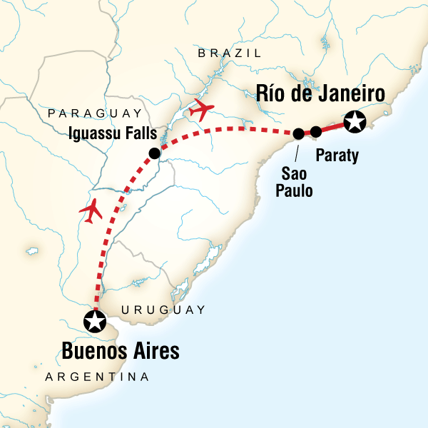 First we fly north to the Iguassu Falls area and cross the border from Argentina to Brazil at Puerto Iguazu. Our visit to Brazil begins with the magnificent Foz do Iguaçu, or Iguassu falls, bordering Brazil, Paraguay, and Argentina. In order to see the falls properly you need to view them from both the Brazilian and the Argentinean side. The Brazilian side offers the grand overview, and the Argentinean side, a closer look. The best time of the year to see them is from August to November, as from May to July you may not be able to approach the swollen waters on the catwalks. We include a visit to both the Argentine and Brazilian side of the Falls. Experience an exhilarating optional boat tour at the falls or a trip to the bird sanctuary on the Brazilian side of the falls. Note: If you have booked the Iguassu Falls Boat Ride Theme Pack, you will do it on Day 3 or 4 when visiting the Argentine side of the falls. The torrential Iguassu River crosses the State of Paraná in Southern Brazil from East to West. A few kilometres before its junction with the Paraná River forms one of the most splendorous natural beauties of the world: Iguassu Falls. Over 2.7 kilometres long and an average flow of 1.750 m3/s, this wonder is located in a very special place. The contrast between the green of the vegetation and the dark colour of the basalt rocks with whirring waters plunging from a 72 metre high cliff is magical. At Iguassu there are 275 falls in all, spread over a 3-km area, some over 80m (262.4 ft) in height, making these cataracts wider than Victoria Falls and higher than Niagara! It should come as no surprise that UNESCO declared the region a World Heritage Site in 1986. Originally “discovered” in 1541 by the Spaniard Juan Alvar Nuñez, he named the falls Saltos de Santa María. The name we use today means “great waters” in the Tupi-Guarani tongue. The falls are protected by two National Parks—one in Brazil and another in Argentina. Tours utilise trails and catwalks adapted to the landscape of the area, and walking is easy for all ages; guided tours of the complex are available several times a day. In order to see the falls properly, you need to view them from both the Brazilian and the Argentinean side: the Brazilian side offers the grand overview, and the Argentine side a closer look. The best time of the year to visit is from August to November, as during rainy season from May to July, flooding will likely prevent closer viewing from the catwalks. Film buffs will remember that Iguassu was the site of several scenes from the film “The Mission.” Not far from the falls, the ruins of the Jesuit missions of the era can still be visited on a day trip. Also of interest in the area is Itaipú, the largest hydroelectric complex in the world. Experience an exhilarating optional boat tour or helicopter trip for a bird's eye view, or simply marvel at nature’s breadth and the roar of the falls. Day 3 Travel: Buenos Aires to Puerto Iguazu Approximate distance: 1640 Km Approximate flight time: 1.5 hours Included Activity: Visit to Brazilian and Argentinian Side of Iguassu Falls