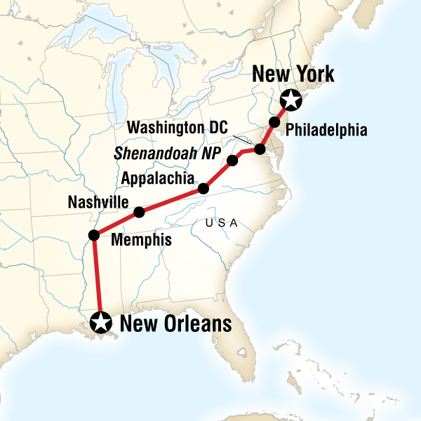 Enjoy an orientation tour of New Orleans. Experience the city at its best. Party in the French Quarter till the early hours, dance to great jazz bands and try out delicious Creole food. Enjoy a last dinner our with the group before it's time to say goodbye! For our night in final night in New Orleans, we stay close to the action in a hotel in the city center. Approximate Distance: 640 km Estimated Travel Time: 8 hrs (including stops)