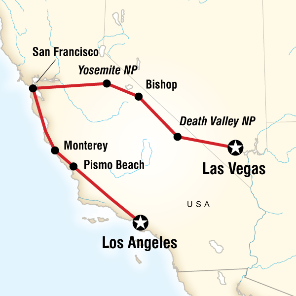 Visit one of the country's most rugged landscapes, the legendary Death Valley, the hottest and driest spot and home to the lowest point in North America. Surrounded by peaks which soar to over 14,000 feet in elevation, Bishop, one of "America's Coolest Mountain Towns" sits directly in the center of an incredible area of natural beauty. Enjoy secluded hot springs where star gazing is amazing. Note that on Day 3, we intend on using the Tioga Pass, a scenic a route through the Sierra Nevada mountain range that connects Bishop with Yosemite NP. In the spring and autumn seasons, there's a chance that the pass will be closed due to poor weather conditions or even snow. In such a case, we use an alternate route today, and will spend the night in Lake Isabella instead of Bishop. The status of the road is monitored daily, and our travel plan for the area will be confirmed during the trip. Approximate Distance: 490 km Estimated Travel Time: 7 hrs (including multiple stops)